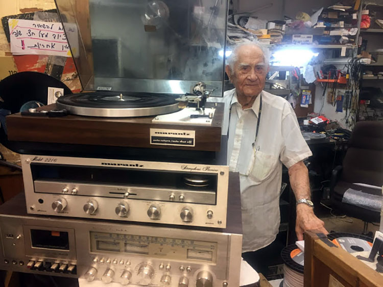 אלדד הורוביץ בחנות "רדיו כוכב". השנה חוגג 96